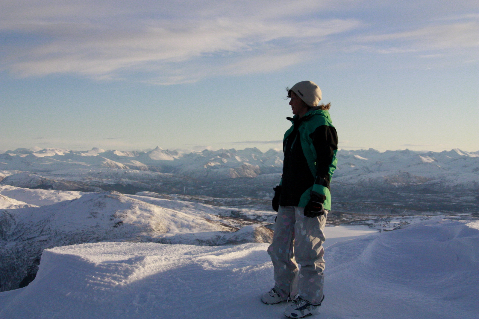 Beina begynte å bli litt skjelvne da toppvarden endelig kom til syne. Boka på toppen bærer navnet «Sjortå», en artig lokal skrivemåte. Oppe på toppen er det en fantastisk utsikt. Her ser man helt ut til havet i klarvær, blå fjorder, grønne marker nede i lavlandet og et utall av snødekte fjell og fjellsider. Men etter at utsikten var behørig foreviget på minnebrikken skulle endelig moroa starte. Etter å ha strevd seg opp 1600 høydemeter skulle vi nå nyte godene fra tyngdekraften, og la den føre oss de samme 1600 høydemetrene ned igjen. Føret var perfekt, et stabilt hardt skarelag lå i bunnen, mens nattens lille snøfall ga oss 10 cm med mykt pudder på toppen.